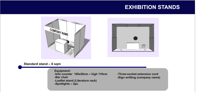 - A booth setup for 1 conference day